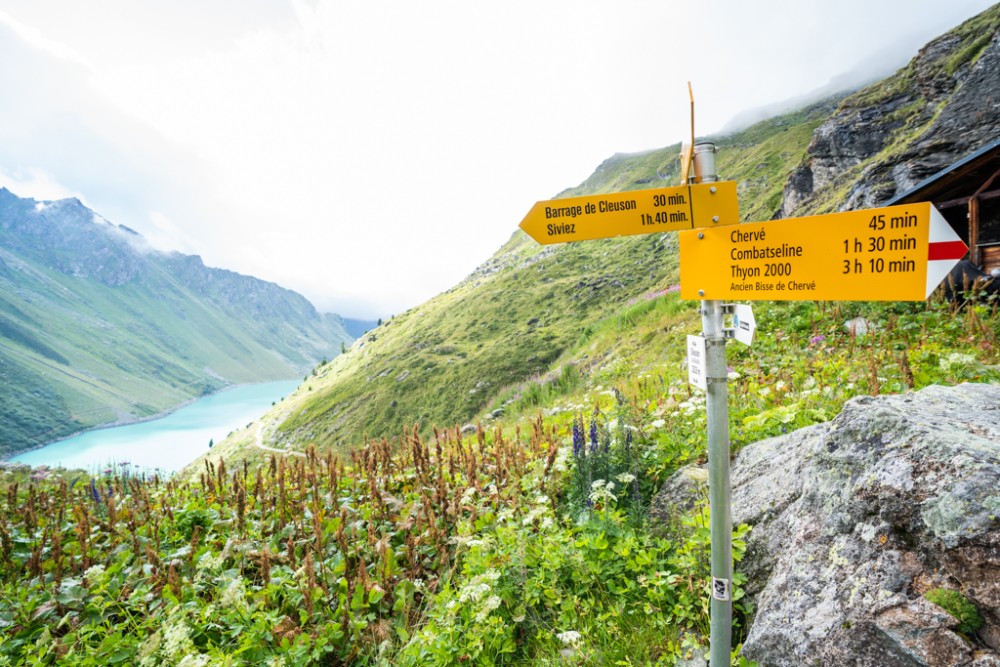 In der Gemeinde Nendaz befinden sich acht Suonen, historische Bewässerungskanäle des Wallis, denen allesamt entlanggewandert werden kann. Die höchstgelegene dieser acht Suonen ist die Bisse de Chervé bei Siviez, Super-Nendaz. Sie führt heute kein Wasser mehr, doch die Wanderung entlang dieser Suone stellt eine wunderschöne Höhenwanderung von Combatzeline bis zum türkisfarbenen Stausee Lac de Cleuson dar. Mit dem Sessellift «Novelli» geht es luftig hinauf bis nach Combatzeline. Nach einem stärkenden Kaffee im Restaurant Combatseline mit Aussicht auf das Rhonetalstartet die Wanderung. Hoch über dem Tal folgt man der Suone. Mit Blick auf den strahlenden, türkisfarbenen Lac de Cleuson wandert es sich viel leichter, während im Rücken das wunderbare Rhonetal liegt. Stets hoch oben gelangt man tiefer in das Tal hinein während die mächtigen Walliser Berge näherrücken. Am Ende der Bisse de Chervé beginnt dann der Abstieg zum Stausee. Wer Glück hat, kann hier die imposanten, für das Wallis typischen, schwarzen Eringerkühe sichten. Am Ufer angelangt, folgt man diesem direkt entlang bis zur Staumauer. Unterwegs kann man am Ufer eine Pause einlegen und die Füsse im kalten Wasser abkühlen. Die Staumauer des Sees gilt es dann zu überqueren, bevor ein enger und steiler Zickzack-Weg den Abstieg einläutet. Kurz danach fühlt man sich in eine andere Welt versetzt, denn der Wanderweg verläuft durch ein dschungelähnliches Dickicht aus einheimischen Pflanzen. Die Landschaft verändert sich auf dem Weg dem Ziel entgegen und statt dem Dickicht durchwandert man nun Moorlandschaften. Müde erreicht man schon bald wieder den Ausgangspunkt Siviez, wo auf einer der Terrassen der Restaurants auf die gelungene Wanderung angestossen werden kann.