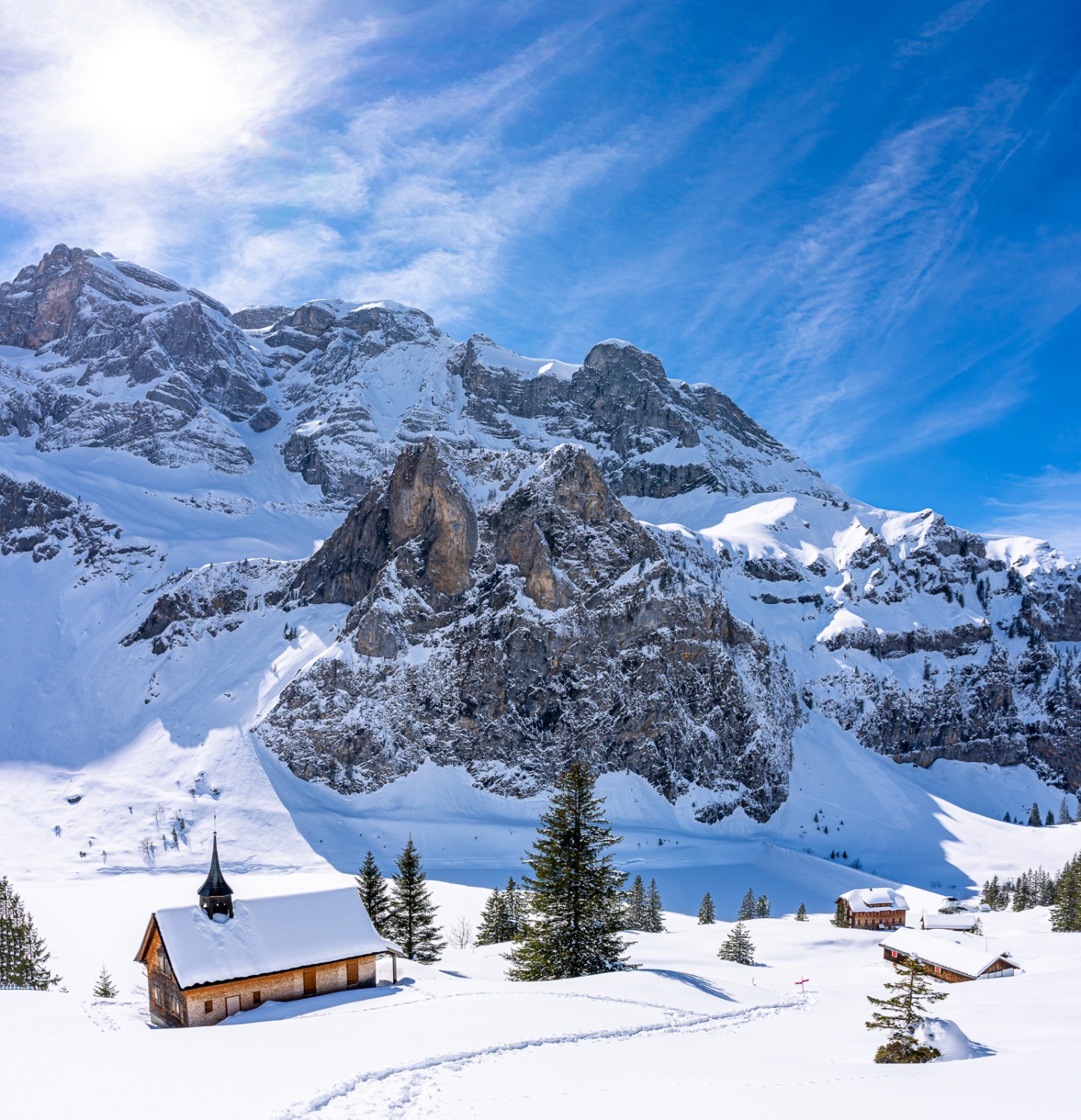 Die wunderbar in die Landschaft eingebettete Schneeschuhroute ist mit 3 km und 140 Höhenmetern im Auf- und im Abstieg eher kurz, aber abwechslungsreich und deshalb für Familien gut geeignet. Im Dezember und Januar werfen die Bergriesen jedoch ihren Schatten auf die auf 1700 Metern gelegene Bannalp, weshalb ein Besuch eher im Februar oder März zu planen ist. Wer keine eigene Ausrüstung hat, kann diese an der Talstation mieten.