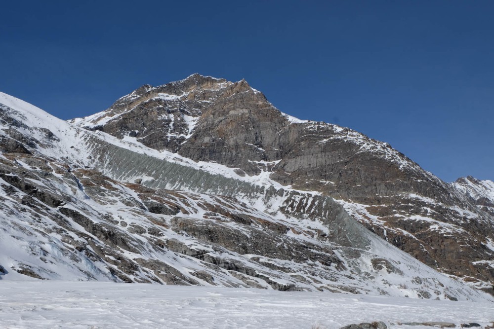 Das Klein Allalinhorn talauswärts. Und wieder beeindrucken die Moränen. Bild: Elsbeth Flüeler.