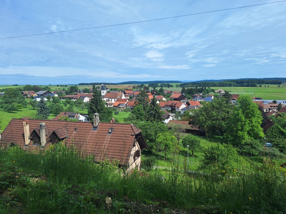 Tra gli alberi si scorge Vendlincourt.. Vignetta: Tatjana Häuselmann