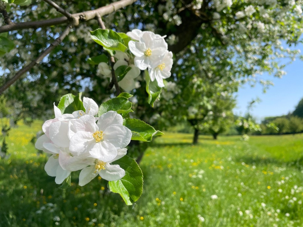 • Ein spät blühender Obstbaum auf der Schönmatt.